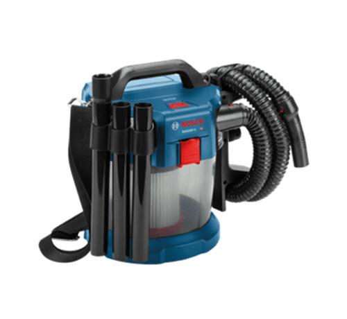 The Bosch GAS18V-3N 18V Cordless Wet/Dry Vacuum Cleaner is a convenient solution for cleanup just about anywhere, including shop, jobsite and truck. Working with the Bosch 18V power system, this cordless vac is built to complete cleanup or emptying chores. It provides sustained performance with long runtime and delivers up to 30 minutes of runtime using a CORE 8.0 Ah Performance Battery (sold separately). This wet/dry vacuum features rotational airflow technology, produced by a special vacuum canister structure, for sustained suction. It forces debris against walls of canister, helping to reduce clogging, and it delivers up to 51 CFM of airflow. Portable, handy and powerful, this vac has a large 2.6 gallon tank but weighs only 10.2 Lbs. (tool with attachments only, not including battery). It features a large, washable HEPA filter, which captures 99.97% of particles at 0.3 microns and larger. The vac also features a complete set of attachments, including three extension tubes plus a standard nozzle, a crevice nozzle, a floor nozzle, a bend/elbow nozzle and a carrying strap. When used with the optional Bosch vacuum hose adapter (sold separately), this vac can be connected with many Bosch power tools and attachments that have dust-collection ports.