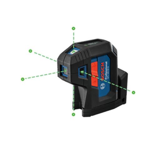 The Bosch GPL100-50G features a five-point, self-leveling laser with ±1/8 In. accuracy at 30 Ft. for up/down plumb, align and level applications (the bottom point’s accuracy is ±1/4 In. at 30 Ft.). This unit features green-beam technology, which is up to 4X brighter than standard red beams. It also has the Bosch-exclusive VisiMax™ technology, which delivers maximum beam brightness in most jobsite conditions. The unit includes point projection to the front, so it can be used in a variety of positions for flexibility on the job. It is faster than a standard manual plumb bob. The unit includes several durability features, such as the Smart Pendulum System to lock the laser when switched off, 360 degree rotation, a hard carrying case and full rubber overmold housing. The integrated multipurpose laser mount features strong magnets and allows the user to mount the laser virtually anywhere.